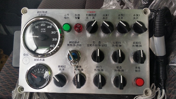 該掃路車采用東風多利卡(軸距3800)國VI二類底盤改裝,加裝副發動機、風機、 清水箱、垃圾箱、左右立掃、后置吸盤,掃盤降塵系統,液壓系統、專用裝置電控系統和副車架等改裝而成(可加裝前沖后灑)。